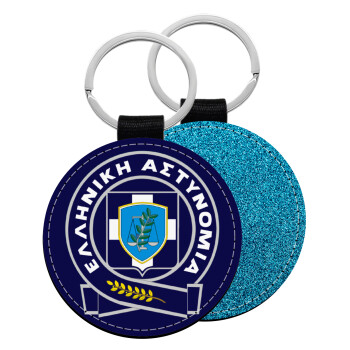 Ελληνική Αστυνομία, Μπρελόκ Δερματίνη, στρογγυλό ΜΠΛΕ (5cm)