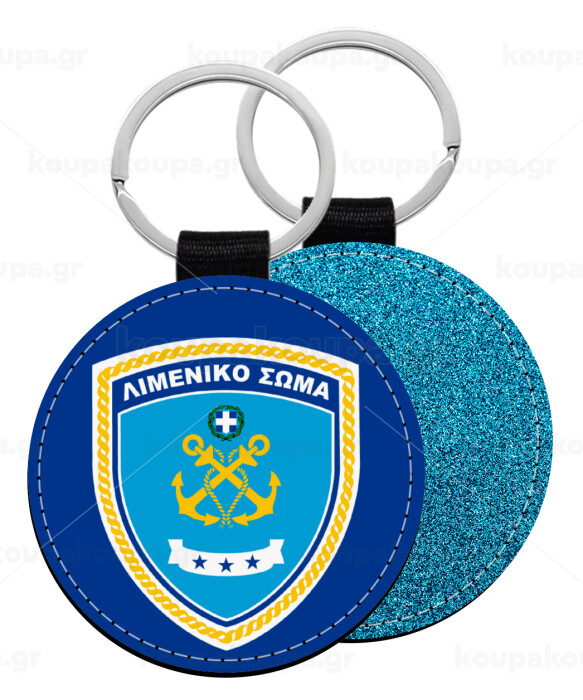 Λιμενικό σώμα, Μπρελόκ Δερματίνη, στρογγυλό ΜΠΛΕ (5cm)