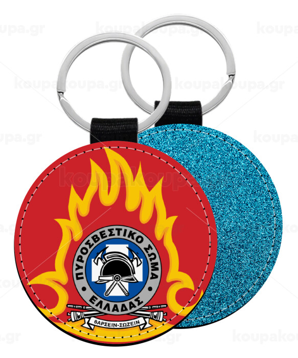 Πυροσβεστικό σώμα Ελλάδος, Μπρελόκ Δερματίνη, στρογγυλό ΜΠΛΕ (5cm)