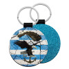 Hellas army αετός, Μπρελόκ Δερματίνη, στρογγυλό ΜΠΛΕ (5cm)
