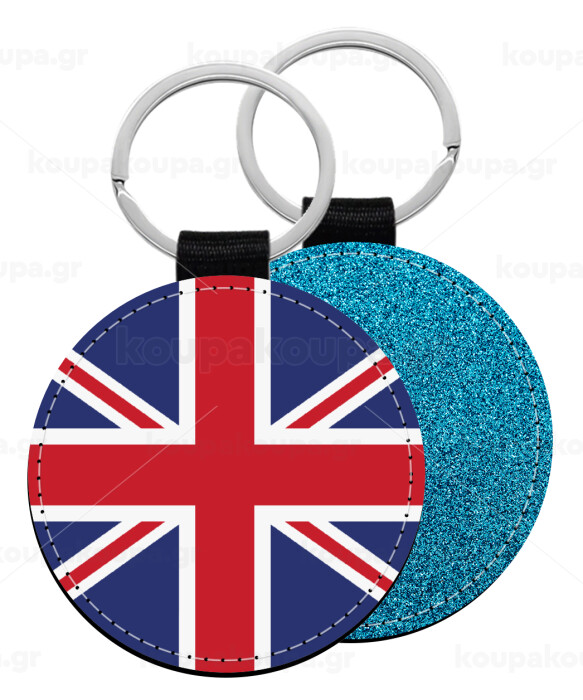 Σημαία Αγγλίας UK, Μπρελόκ Δερματίνη, στρογγυλό ΜΠΛΕ (5cm)