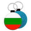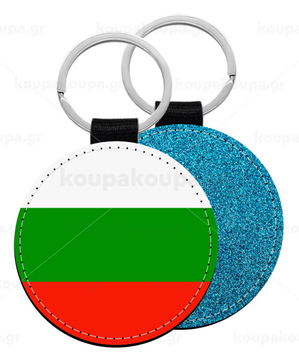 Bulgaria flag, Μπρελόκ Δερματίνη, στρογγυλό ΜΠΛΕ (5cm)