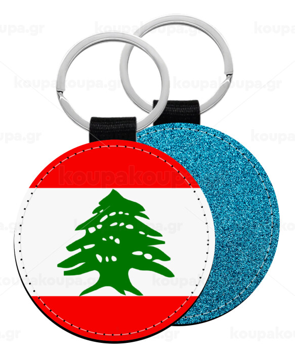 Lebanon flag, Μπρελόκ Δερματίνη, στρογγυλό ΜΠΛΕ (5cm)