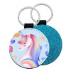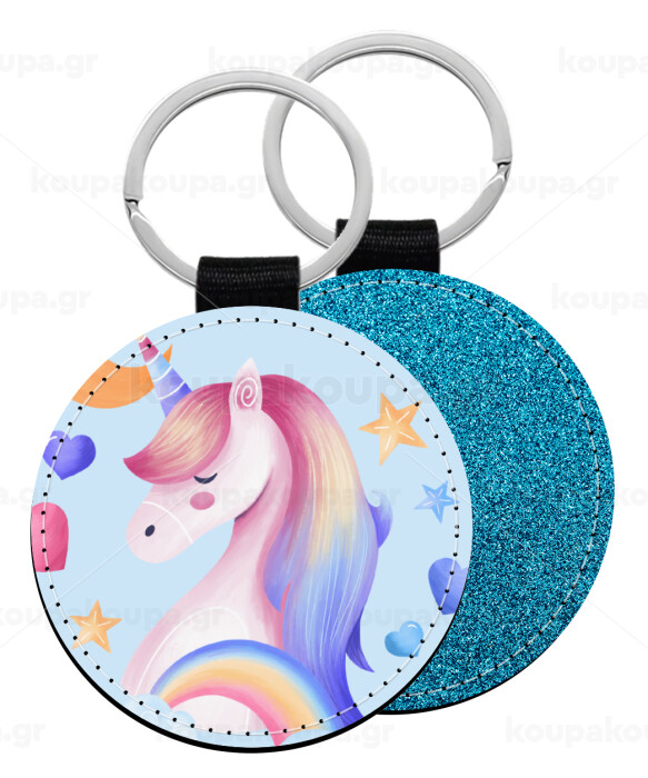 Μονόκερος, Μπρελόκ Δερματίνη, στρογγυλό ΜΠΛΕ (5cm)