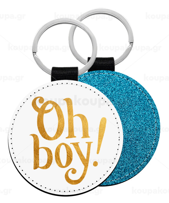 Oh baby gold, Μπρελόκ Δερματίνη, στρογγυλό ΜΠΛΕ (5cm)