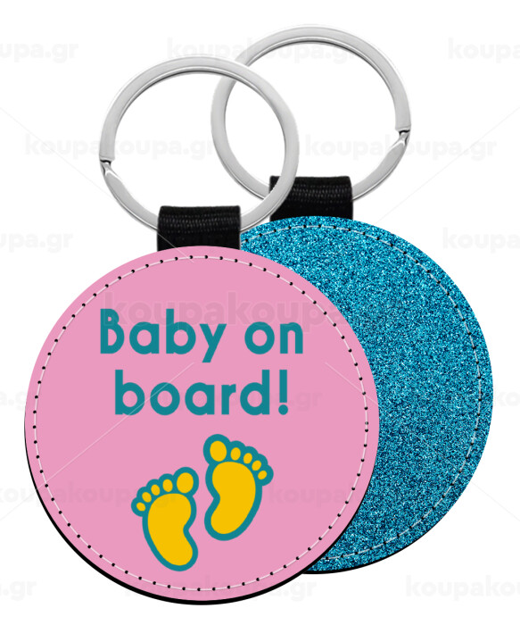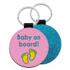 Baby on Board πατουσα Κορίτσι, Μπρελόκ Δερματίνη, στρογγυλό ΜΠΛΕ (5cm)