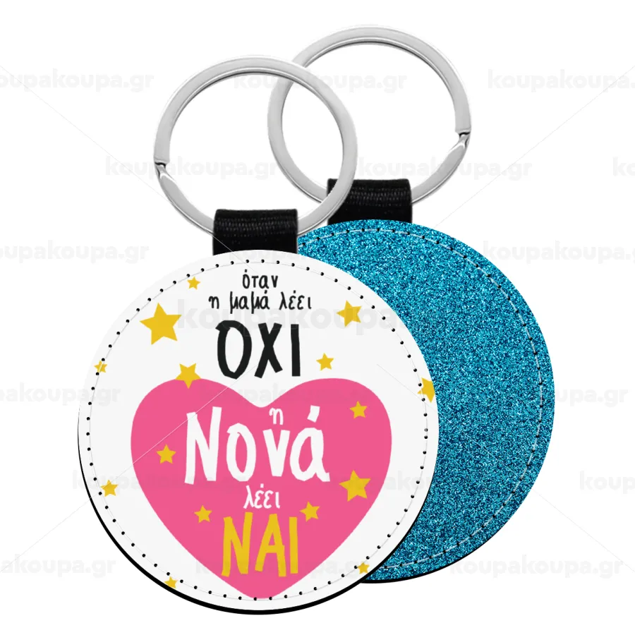 Η νονά λέει ναι!!!, Μπρελόκ Δερματίνη, στρογγυλό ΜΠΛΕ (5cm)