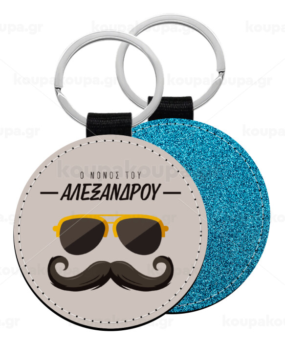 Ο νονός μου, μουστάκι με γυαλιά, Μπρελόκ Δερματίνη, στρογγυλό ΜΠΛΕ (5cm)