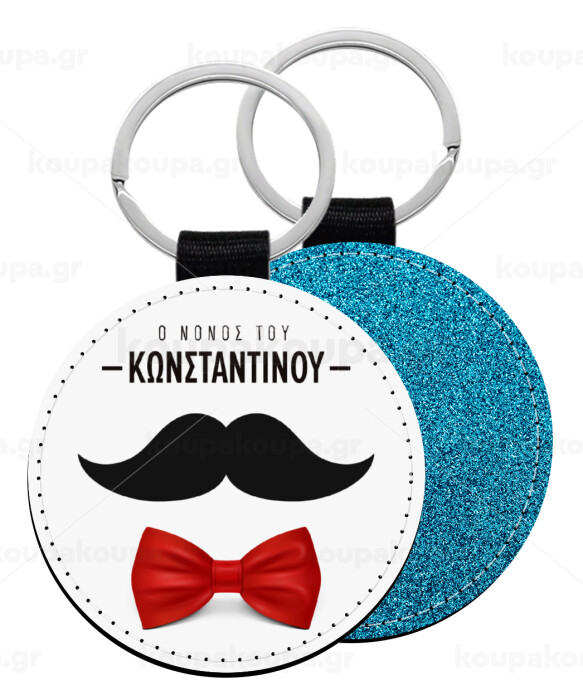 Ο νονός μου, μουστάκι με παπιγιόν, Μπρελόκ Δερματίνη, στρογγυλό ΜΠΛΕ (5cm)