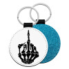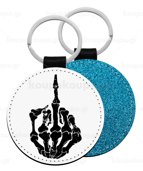 Middle finger, Μπρελόκ Δερματίνη, στρογγυλό ΜΠΛΕ (5cm)