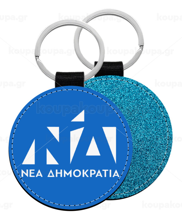 Νέα δημοκρατία, Μπρελόκ Δερματίνη, στρογγυλό ΜΠΛΕ (5cm)