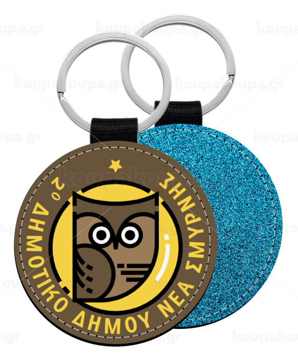 Έμβλημα Σχολικό brown, Μπρελόκ Δερματίνη, στρογγυλό ΜΠΛΕ (5cm)