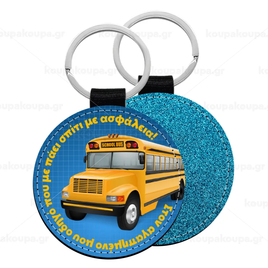 Στον αγαπημένο μου οδηγό σχολικού!, Μπρελόκ Δερματίνη, στρογγυλό ΜΠΛΕ (5cm)