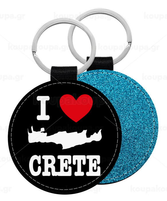 I Love Crete, Μπρελόκ Δερματίνη, στρογγυλό ΜΠΛΕ (5cm)