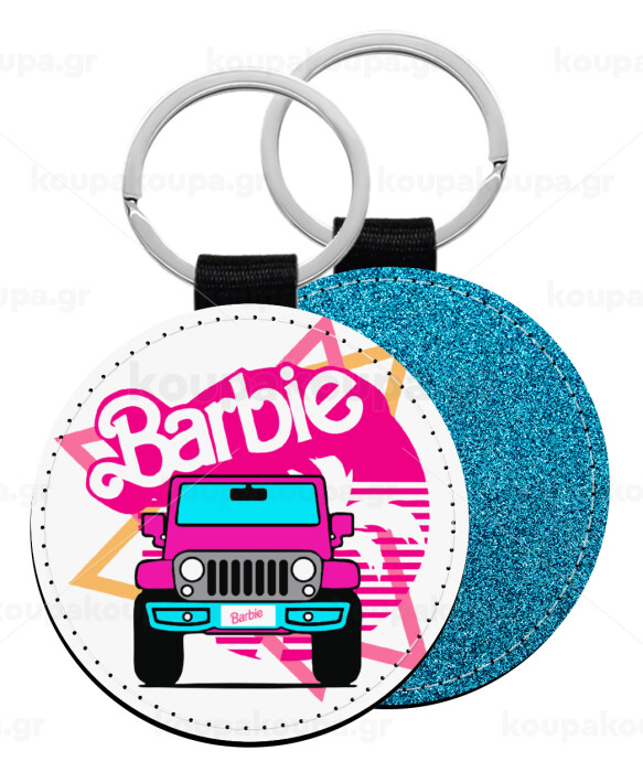 Barbie car, Μπρελόκ Δερματίνη, στρογγυλό ΜΠΛΕ (5cm)