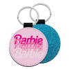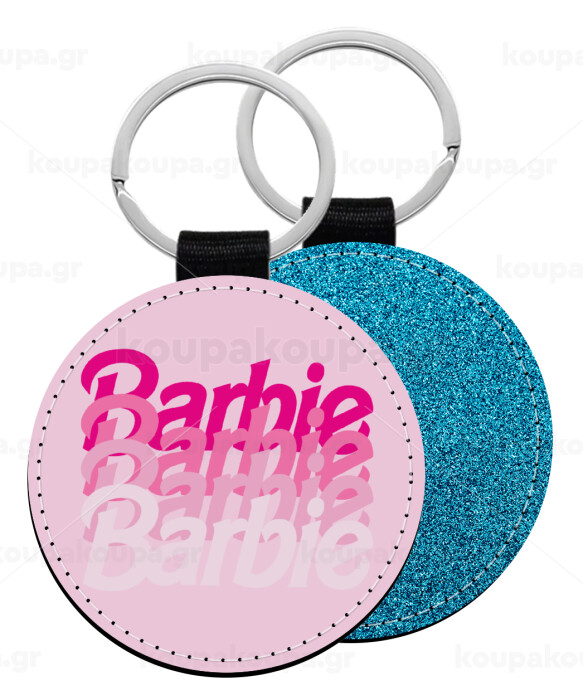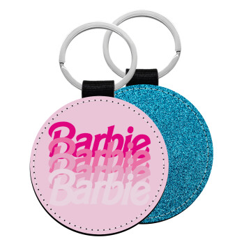 Barbie repeat, Μπρελόκ Δερματίνη, στρογγυλό ΜΠΛΕ (5cm)