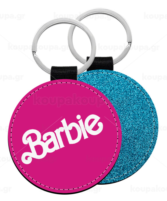 Barbie, Μπρελόκ Δερματίνη, στρογγυλό ΜΠΛΕ (5cm)