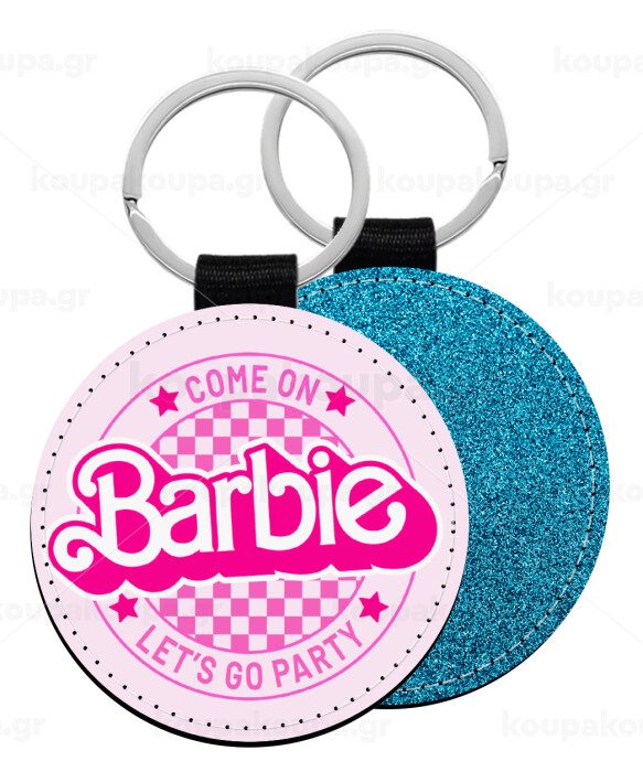 Come On Barbie Lets Go Party , Μπρελόκ Δερματίνη, στρογγυλό ΜΠΛΕ (5cm)
