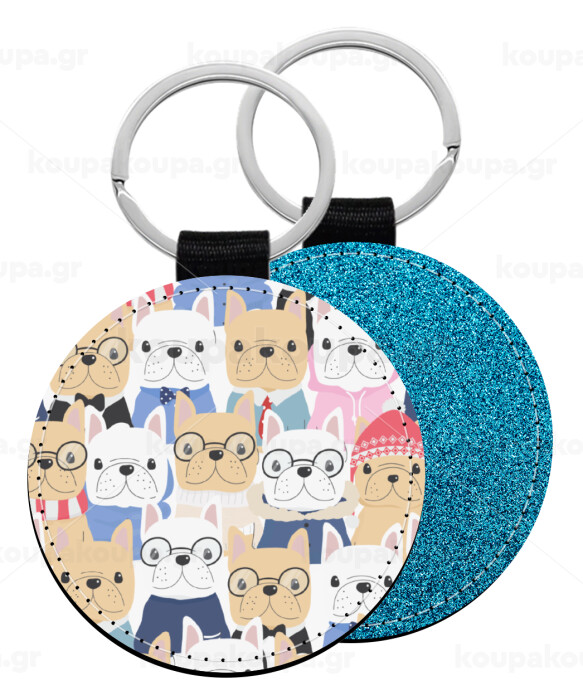 Σκύλοι, Μπρελόκ Δερματίνη, στρογγυλό ΜΠΛΕ (5cm)