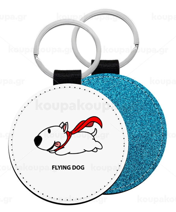 Flying DOG, Μπρελόκ Δερματίνη, στρογγυλό ΜΠΛΕ (5cm)