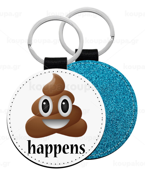 Shit Happens, Μπρελόκ Δερματίνη, στρογγυλό ΜΠΛΕ (5cm)