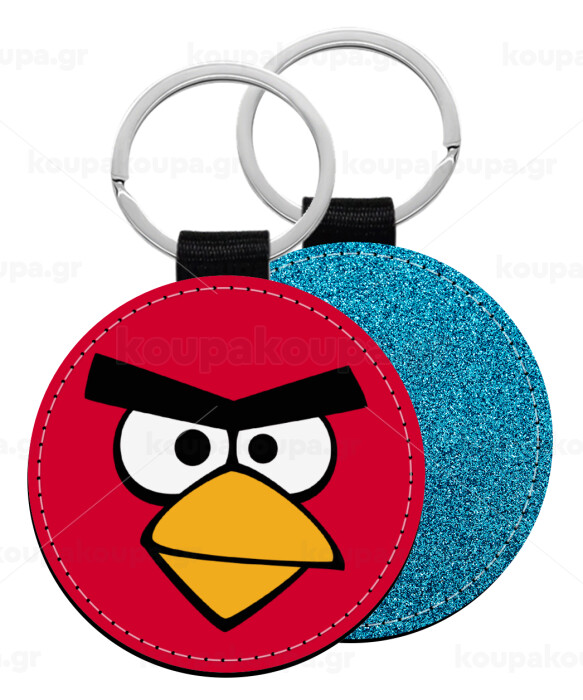 Angry birds eyes, Μπρελόκ Δερματίνη, στρογγυλό ΜΠΛΕ (5cm)