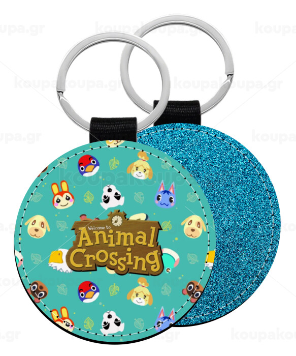 Animal Crossing, Μπρελόκ Δερματίνη, στρογγυλό ΜΠΛΕ (5cm)