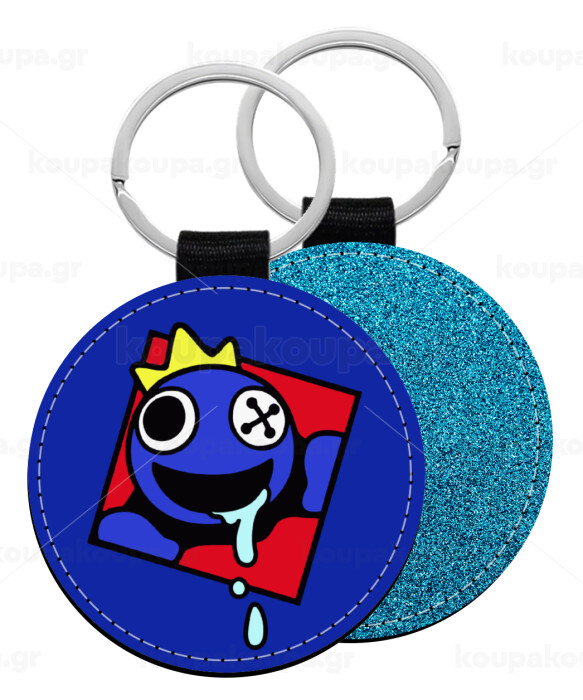 Blue, Rainbow friends, Μπρελόκ Δερματίνη, στρογγυλό ΜΠΛΕ (5cm)