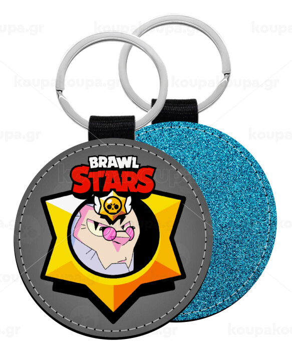 Brawl Stars Byron, Μπρελόκ Δερματίνη, στρογγυλό ΜΠΛΕ (5cm)