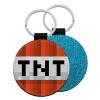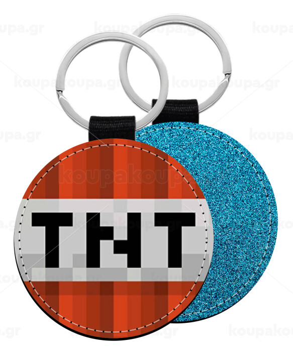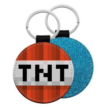 Minecraft TNT, Μπρελόκ Δερματίνη, στρογγυλό ΜΠΛΕ (5cm)