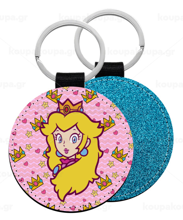 Princess Peach, Μπρελόκ Δερματίνη, στρογγυλό ΜΠΛΕ (5cm)