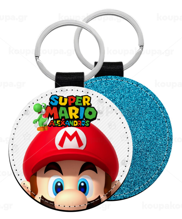 Super mario head, Μπρελόκ Δερματίνη, στρογγυλό ΜΠΛΕ (5cm)