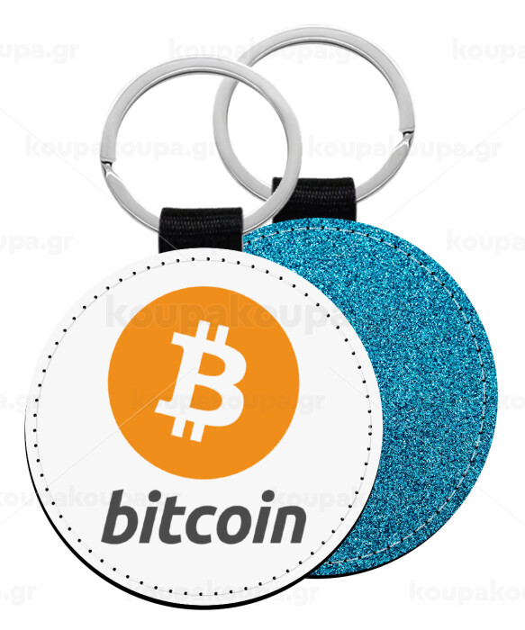Bitcoin, Μπρελόκ Δερματίνη, στρογγυλό ΜΠΛΕ (5cm)