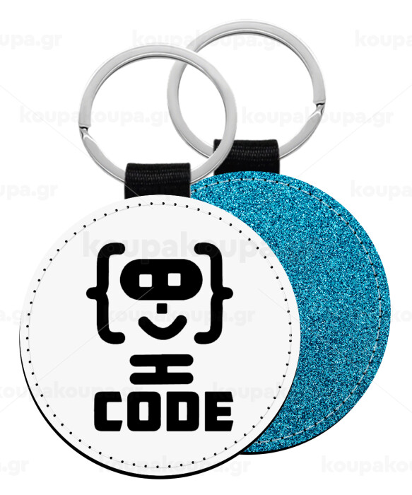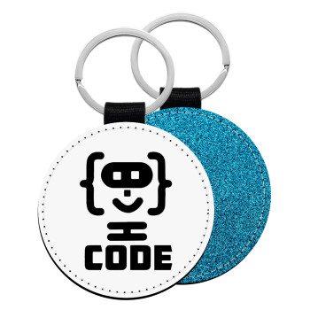 Code Heroes symbol, Μπρελόκ Δερματίνη, στρογγυλό ΜΠΛΕ (5cm)