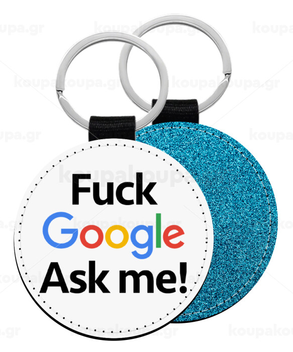 Fuck Google, Ask me!, Μπρελόκ Δερματίνη, στρογγυλό ΜΠΛΕ (5cm)