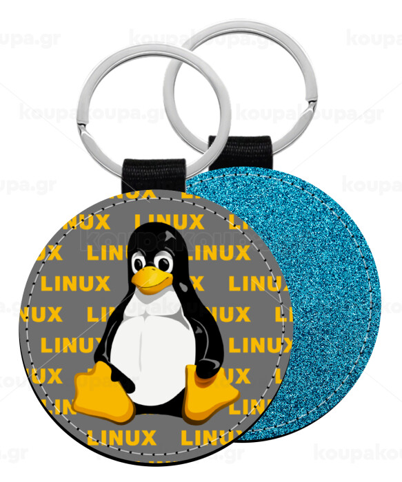 Linux, Μπρελόκ Δερματίνη, στρογγυλό ΜΠΛΕ (5cm)