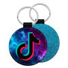 tiktok space galaxy, Μπρελόκ Δερματίνη, στρογγυλό ΜΠΛΕ (5cm)