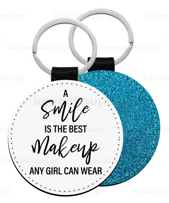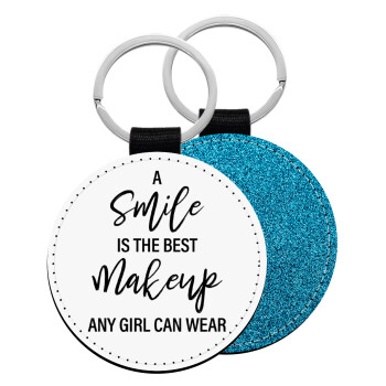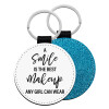 A slime is the best makeup any girl can wear, Μπρελόκ Δερματίνη, στρογγυλό ΜΠΛΕ (5cm)
