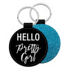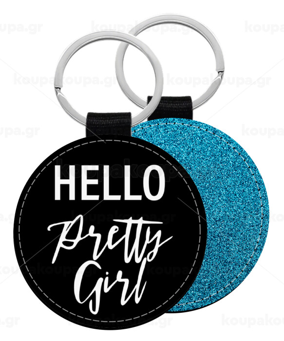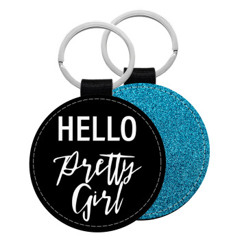 Hello pretty girl, Μπρελόκ Δερματίνη, στρογγυλό ΜΠΛΕ (5cm)