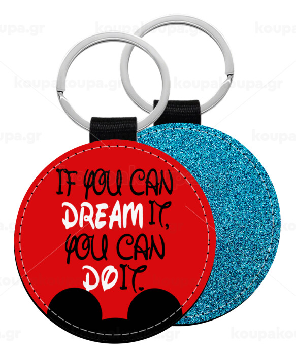 If you can dream it, you can do it, Μπρελόκ Δερματίνη, στρογγυλό ΜΠΛΕ (5cm)