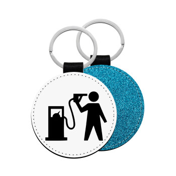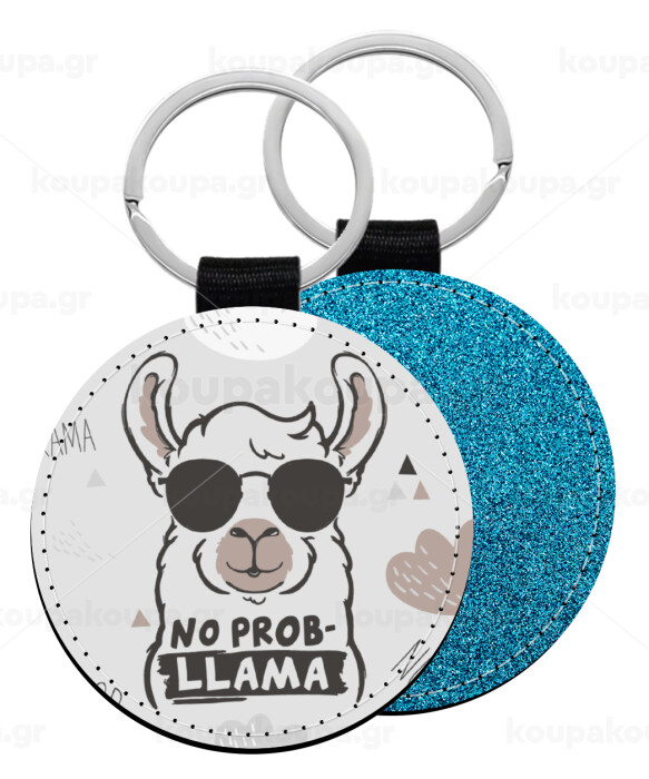 No Prob Llama, Μπρελόκ Δερματίνη, στρογγυλό ΜΠΛΕ (5cm)