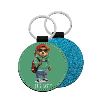 Mπρελόκ από δερματίνη με glitter στην μία πλευρά και στην άλλη δερματίνη μεγάλης αντοχής. Κρίκος ασφάλειας για τα κλειδιά.
