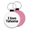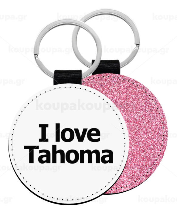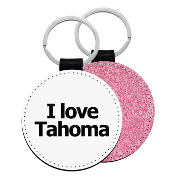 I love Tahoma, Μπρελόκ Δερματίνη, στρογγυλό ΡΟΖ (5cm)