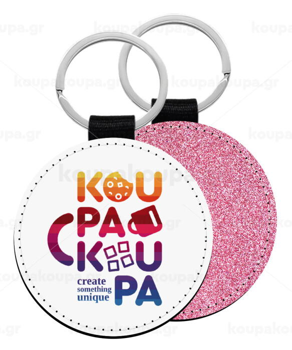 koupakoupa, Μπρελόκ Δερματίνη, στρογγυλό ΡΟΖ (5cm)