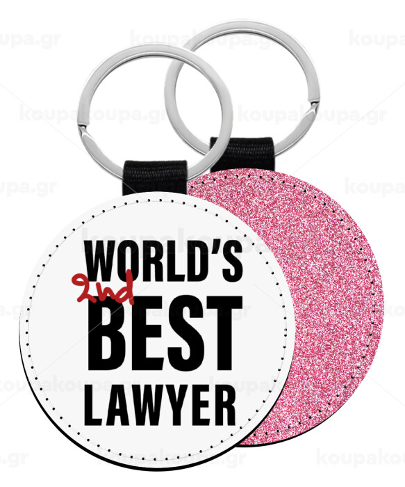 2nd, World Best Lawyer , Μπρελόκ Δερματίνη, στρογγυλό ΡΟΖ (5cm)