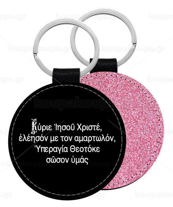 Προσευχή του Ιησού, Μπρελόκ Δερματίνη, στρογγυλό ΡΟΖ (5cm)