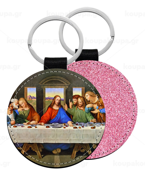 Μυστικός δείπνος, Μπρελόκ Δερματίνη, στρογγυλό ΡΟΖ (5cm)