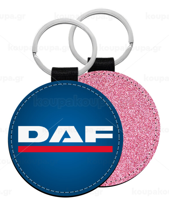 DAF, Μπρελόκ Δερματίνη, στρογγυλό ΡΟΖ (5cm)