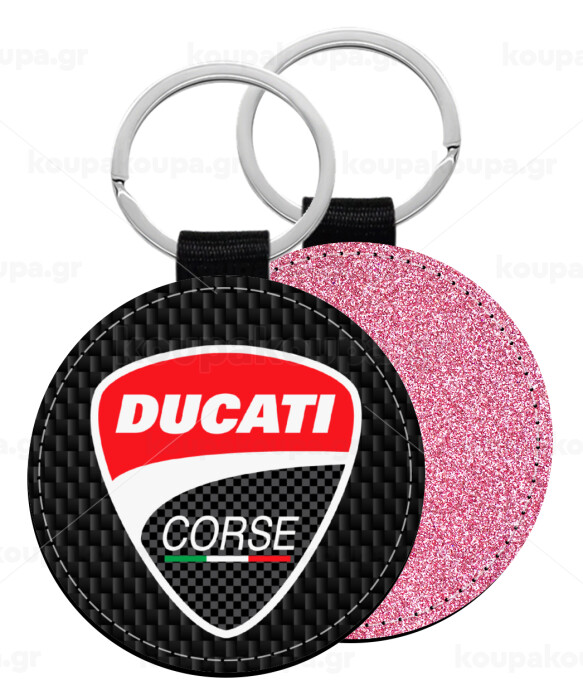 Ducati, Μπρελόκ Δερματίνη, στρογγυλό ΡΟΖ (5cm)