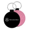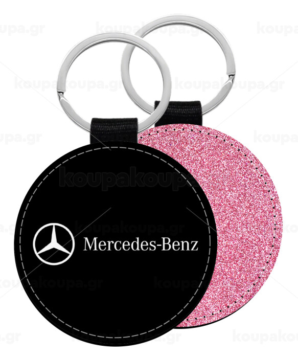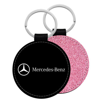 Mercedes small logo, Μπρελόκ Δερματίνη, στρογγυλό ΡΟΖ (5cm)